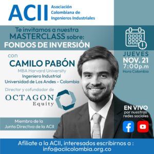 El pasado 21 de Noviembre tuvimos el privilegio de entrevistar al Ingeniero Camilo Pabón con la masterclass en Fondos de Inversión. Si te perdiste esta interesante entrevista, te invitamos a verla en el siguiente enlace.