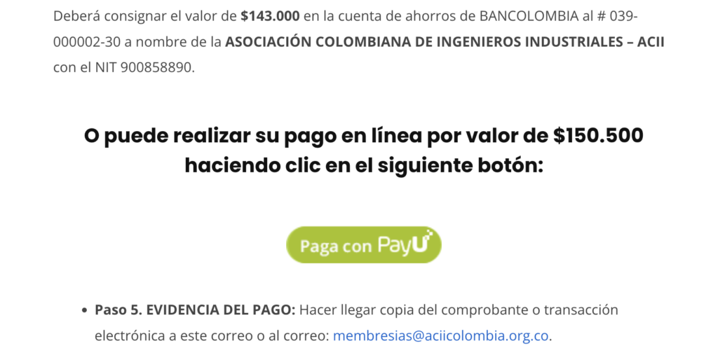 Con mucho agrado les informamos que tenemos a disposición de nuestra comunidad la nueva forma de pago con PayU, este método facilitará para nuestros nuevos miembros y asociados desde la comodidad de sus casas o trabajos la actualización de su membresía, de igual forma pronto tendremos a disposición nuestra Boutique Virtual de la ACII dedicada a productos de memorabilia y accesorios relacionados con la Ingeniería Industrial. Muchas gracias a nuestro colega y asociado Juan Fonseca por esta nueva implementación.