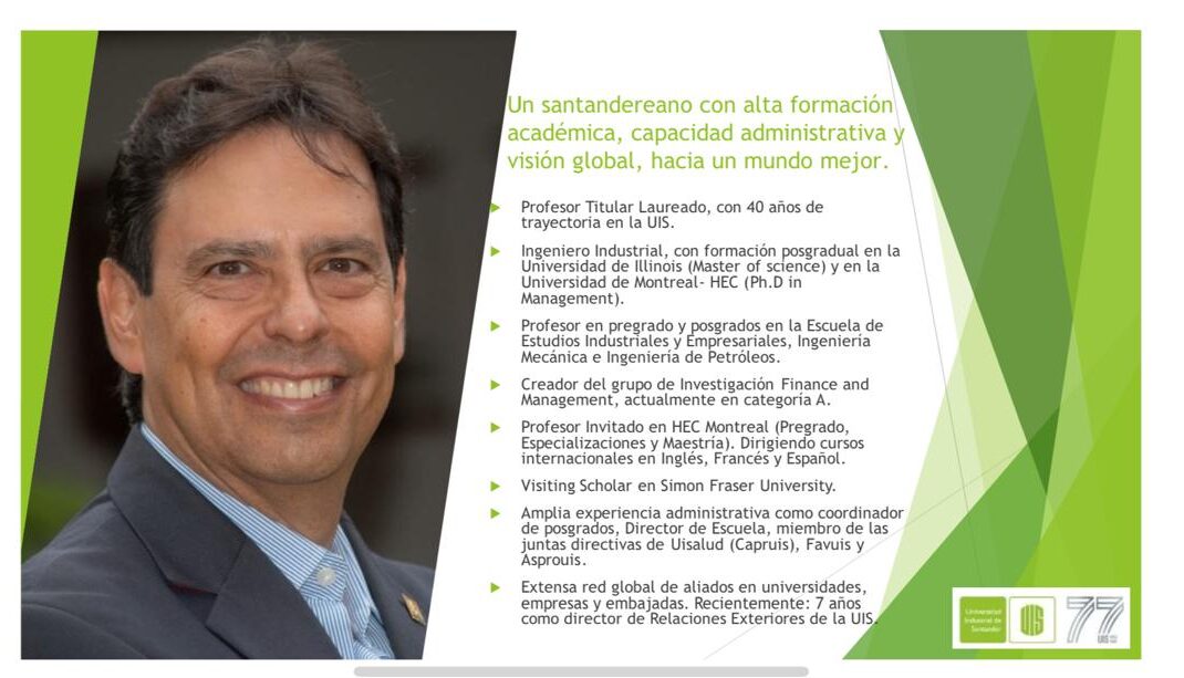 1. Carlos Vecino: Le deseamos éxitos al Ingeniero Industrial Carlos Vecino en su candidatura para Rector de la UIS. Reconocido catedrático en Colombia y Canadá.